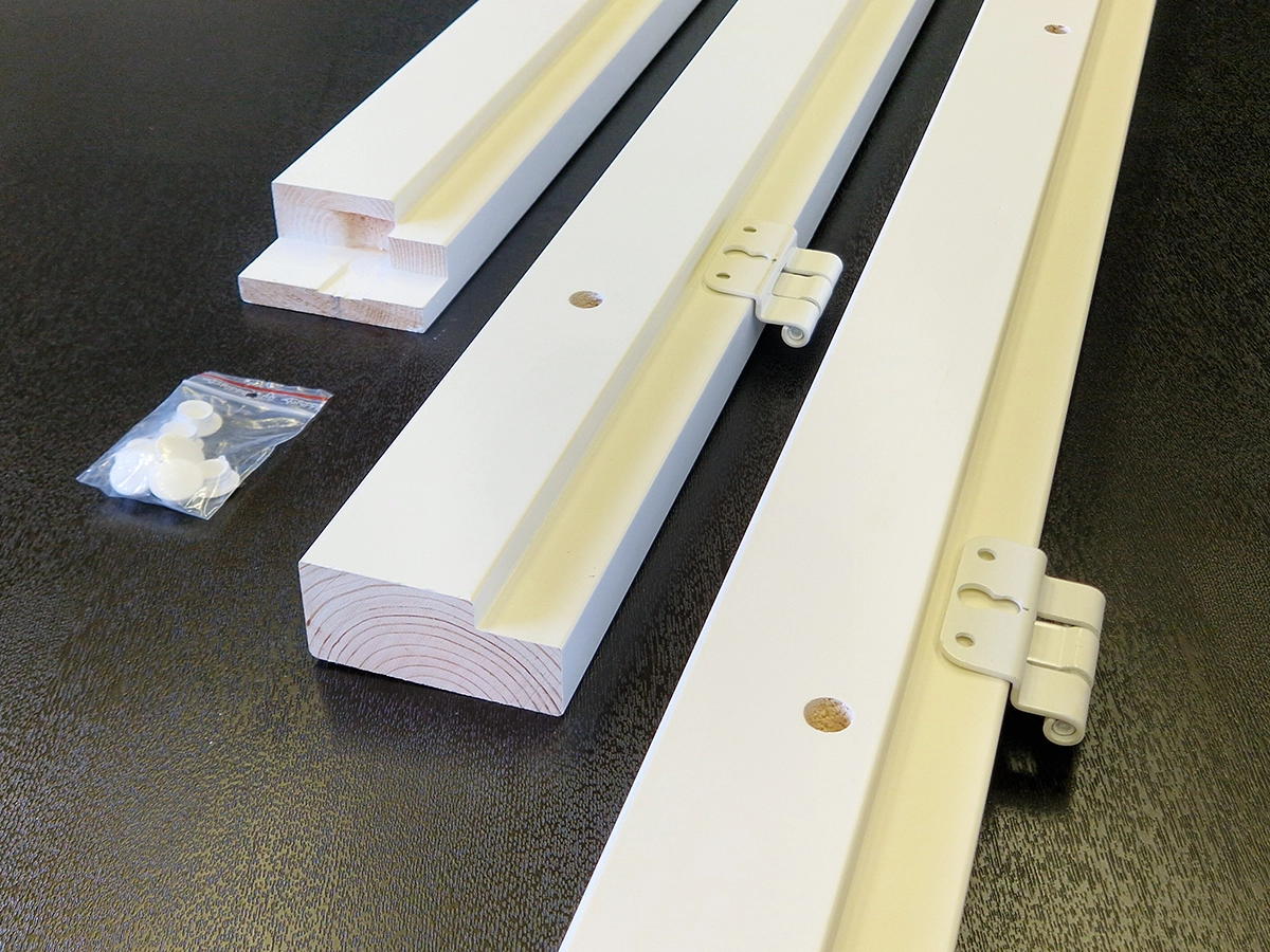 - Karmisetti sisältää 2 sivukarmia (sarana- ja lukkopuoli) sekä yläkappaleen